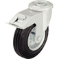 Zwenkwiel met boutgat geremd, Max. belasting: 70 kg, Ø: 100 mm, Wiel/Zwenkwielen: Bokwiel/zwenkwiel, Wiel/Zwenkwielen kracht (Reeks): 1 - 100 kg, Wiel/Zwenkwielen diameter (Reeks): 1 - 100 mm, Type loopvlak: Rubber, Model: Zwenkwiel met rem, Type naaf: Rollager, Breedte loopvlak: 30 mm, Totale hoogte: 125 mm, Boutgat Ø: 13 mm, Kleur: Zwart, Uitlading: 36 mm, Rem: ja, Gewicht: 0.865 kg, Type bevestiging: Met boutgat, Gebruik: Indoor/outdoor goederenbehandeling, Wielframe materiaal: Staal, Ø grondplaat: 70 mm