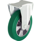 Bokwiel met plaat, Max. belasting: 600 kg, Ø: 200 mm, Wiel/Zwenkwielen: Bokwiel/zwenkwiel, Wiel/Zwenkwielen kracht (Reeks): 501 - 600 kg, Wiel/Zwenkwielen diameter (Reeks): 101 - 200 mm, Type loopvlak: Polyurethaan, Model: Bokwiel, Type naaf: Kogellager, Breedte loopvlak: 50 mm, Totale hoogte: 245 mm, Hartafstand bevestigingsgaten: 105 x 80 mm, Kleur: Groen, Rem: nee, Gewicht: 3.16 kg, Type bevestiging: Met grondplaat, Gebruik: Indoor goederenbehandeling, Wielframe materiaal: Aluminium, Breedte grondplaat: 110 mm, Lengte grondplaat: 140 mm