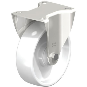 Bokwiel RVS met bevestigingsplaat wiel van polyamide, Max. belasting: 250 kg, Ø: 125 mm, Wiel/Zwenkwielen: Bokwiel/zwenkwiel, Wiel/Zwenkwielen kracht (Reeks): 201 - 300 kg, Wiel/Zwenkwielen diameter (Reeks): 101 - 200 mm, Omgeving voor wielgebruik: Magazijn, Gebruikszwenkwiel: Werkplaatswagen, Type loopvlak: Polyamide, Type naaf: Kogellager, Breedte loopvlak: 40 mm, Totale hoogte: 150 mm, Hartafstand bevestigingsgaten: 80 x 60 mm, Kleur: Wit, Min. gebruikstemperatuur: -25 °C, Max. gebruikstemperatuur: 80 °C, Rem: nee, Gewicht: 700 g, Type nr.: BX-PO 125KAD, Bevestigingsoog Ø: 9 mm, Type bevestiging: Platina, Breedte grondplaat: 100 mm, Lengte grondplaat: 85 mm