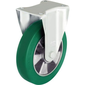 Bokwiel met plaat, Max. belasting: 250 kg, Ø: 100 mm, Wiel/Zwenkwielen: Bokwiel/zwenkwiel, Wiel/Zwenkwielen kracht (Reeks): 201 - 300 kg, Wiel/Zwenkwielen diameter (Reeks): 1 - 100 mm, Type loopvlak: Polyurethaan, Model: Bokwiel, Type naaf: Kogellager, Breedte loopvlak: 40 mm, Totale hoogte: 130 mm, Hartafstand bevestigingsgaten: 80 x 60 mm, Kleur: Groen, Rem: nee, Gewicht: 0.81 kg, Type bevestiging: Met grondplaat, Gebruik: Indoor goederenbehandeling, Wielframe materiaal: Aluminium, Breedte grondplaat: 85 mm, Lengte grondplaat: 100 mm