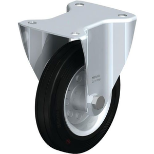 Bokwiel middelzware met bevestigingsplaat TempLine hittebestendig, Max. belasting: 120 kg, Ø: 160 mm, Wiel/Zwenkwielen: Bokwiel/zwenkwiel, Wiel/Zwenkwielen kracht (Reeks): 101 - 200 kg, Wiel/Zwenkwielen diameter (Reeks): 101 - 200 mm, Omgeving voor wielgebruik: Mechanische industrie, Gebruikszwenkwiel: Veegmachine, Type loopvlak: Massief rubber, Type naaf: Rollager, Breedte loopvlak: 40 mm, Totale hoogte: 195 mm, Hartafstand bevestigingsgaten: 105 x 75–80 mm, Kleur: Zwart, Min. gebruikstemperatuur: -25 °C, Max. gebruikstemperatuur: 200 °C, Rem: nee, Gewicht: 1.7 kg, Type nr.: B-VEHI 160R, Bevestigingsoog Ø: 11 mm, Breedte grondplaat: 110 mm, Lengte grondplaat: 140 mm