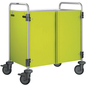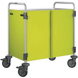 Wagen met bekleding, Max. belasting: 120 kg, Totale hoogte: 950 mm, Totale breedte: 600 mm, Totale lengte: 900 mm, Aantal plateaus: 3, Kleur: Groen, Nuttige lengte plateau: 800 mm, Nuttige breedte plateau: 500 mm, Hoogte tussen 2 plateaus: 275 mm, Max. belasting per afdekplaat: 80 kg, Type wiel: 4 zwenkwielen waarvan 2 met rem, Zwenkwiel Ø: 125 mm, Type nr.: SW8x5-3, Special Covid-19: nee, Frame kleur: Grijs