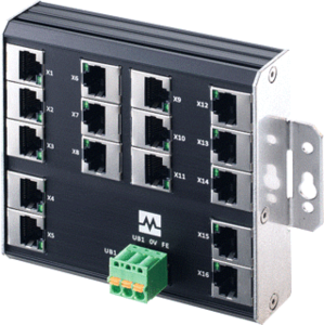 Murr netwerkswitch, (bxdxh) 137x28x105mm, opbouw, ethernet, 16 poorten 10/100 Mbps RJ45, 16 moduleslots, beschermingsgraad (IP) IP20