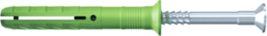 Fischer N slagplug, groen, lengte 80mm, boorgatdiameter 8mm, min. boordiepte 95mm, spijkerschroef meegeleverd, met rand, plug kunststof, bevestigingsdikte 40mm, aandraaivoorziening pozidriv PZ, penvorm spijkerschroef, geschikt voor kalkzandsteen, geschikt voor cellenbeton, geschikt voor beton,