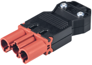 Wieland GST18i3 conn. v insteekbare gebouwinstall., (hxbxl) 12.6x28.2x69.4mm, 3 polen, halogeenvrij, behuizing polyamide (PA), beschermingsgraad (IP) IP40, contactmateriaal cuZn, uitvoering stekker (Male), codering/contactinzetstuk rood, mechanische codering, 1 aansluitingen per pool,