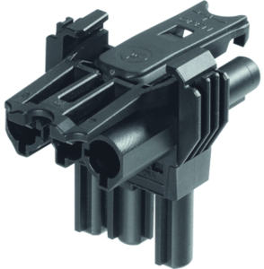 Wieland GST18i3 comp. verd. insteekb. gebouwinstal., (lxbxh) 57.3x37x44.8mm, contactmateriaal cuZn, beschermingsgraad (IP) IP20, behuizing polyamide (PA), halogeenvrij, mechanische codering, type verdeler T-verdeler, 1 ingang, 2 uitgangen, 3 polen, codering/contactinzetstuk zwart,
