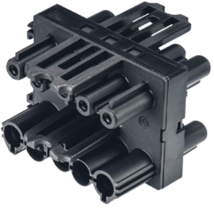 Wieland GST18i5 comp. verd. insteekb. gebouwinstal., (lxbxh) 59x57.7x40mm, contactmateriaal cuZn, beschermingsgraad (IP) IP20, behuizing polyamide (PA), halogeenvrij, mechanische codering, type verdeler combi-verdelerblok, 1 ingang, 3 uitgaande lijnen, 5 polen, codering/contactinzetstuk zwart,