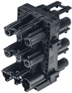 Wieland comp. verd. insteekb. gebouwinstal., (lxbxh) 58x34.9x52.5mm, contactmateriaal overig, beschermingsgraad (IP) IP20, behuizing polyamide (PA), halogeenvrij, mechanische codering, type verdeler verdeelblok, 1 ingang, 5 uitgaande lijnen, 3 polen, codering/contactinzetstuk zwart,