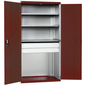 Gecombineerde zware kast Cubio, Lean Management: ja, Totale hoogte: 2000 mm, Aantal laden: 2, Totale breedte: 1050 mm, Aantal legborden: 3, Totale diepte: 650 mm, Hoogte lade: 2 x 125 mm, Kleur deur: Rood, Lade kleur: Lichtgrijs, Max. belasting per legbord: 100 kg, Max. belasting per lade: 75 kg, Geleverd gemonteerd: ja, Recyclebare verpakking: Ja - 100%, Gerecyclede verpakkingen: 93 %, Aantal deuren: 2