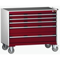 Verrijdbare ladekast Cubio SLR-1067-5.3, Totale hoogte: 880 mm, Aantal laden: 5, Totale breedte: 1050 mm, Totale diepte: 650 mm, Kleur: Rood, Type: Ladekast, Totale hoogte lade: 2 x 75 ; 1 x 100 ; 1 x 150 ; 1 x 200 mm, Kleur ombouw: Lichtgrijs, Max. belasting per lade: 50 kg, Max. belasting: 600 kg, RAL: 3004, Zwenkwiel Ø: 125 mm, Special Covid-19: nee, Aantal legborden: 0, Aantal zwenkwielen: 4, Recyclebare verpakking: Ja - 100%, Gerecyclede verpakkingen: 93 %, Gewicht: 117.6 kg, Type nr.: 40402130.24V, Lade kleur: Rood