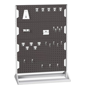 Paneelrek Perfo vast of mobiel, Totale breedte: 1000 mm, Type: Dubbelzijdig 8 panelen met 60 haken, Totale hoogte: 1450 mm, Recyclebare verpakking: Ja - 100%, Gerecyclede verpakkingen: 93 %