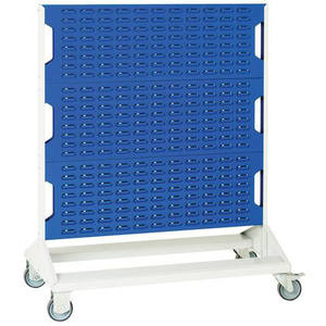 Breedte 1000 mm, diepte 550 mm Vaste hoogte: 1125, 1450 en 1775 mm Mobiele versie uitgerust met 100 mm diameter wielen Enkel of dubbelzijdig Verkrijgbaar in kit met bakken of leeg om zelf uit te rusten volgens uw behoeften Epoxy verf afwerking Grijs frame RAL 7035 en panelen Blauw 5010 Onderste lade optie voor alle dubbelzijdige modellen