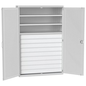 Gecombineerde zware kast Cubio, Lean Management: ja, Totale hoogte: 2000 mm, Aantal laden: 9, Totale breedte: 1300 mm, Aantal legborden: 3, Totale diepte: 650 mm, Hoogte lade: 9 x 125mm, Kleur deur: Lichtgrijs, Lade kleur: Lichtgrijs, Geleverd gemonteerd: ja, Recyclebare verpakking: Ja - 100%, Gerecyclede verpakkingen: 93 %, Aantal deuren: 2
