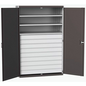 Gecombineerde zware kast Cubio, Lean Management: ja, Totale hoogte: 2000 mm, Aantal laden: 9, Totale breedte: 1300 mm, Aantal legborden: 3, Totale diepte: 650 mm, Hoogte lade: 9 x 125mm, Kleur deur: Antraciet, Lade kleur: Lichtgrijs, Geleverd gemonteerd: ja, Recyclebare verpakking: Ja - 100%, Gerecyclede verpakkingen: 93 %, Aantal deuren: 2