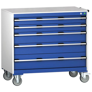 Verrijdbare ladekast Cubio SLR-1068-5.1, Totale hoogte: 990 mm, Aantal laden: 5, Totale breedte: 1050 mm, Totale diepte: 650 mm, Kleur: Blauw, Type: Ladekast, Totale hoogte lade: 2 x 100 ; 2 x 150 ; 1 x 200 mm, Kleur ombouw: Lichtgrijs, Max. belasting per lade: 50 kg, Max. belasting: 600 kg, RAL: 5010, Zwenkwiel Ø: 125 mm, Special Covid-19: nee, Aantal legborden: 0, Aantal zwenkwielen: 4, Recyclebare verpakking: Ja - 100%, Gerecyclede verpakkingen: 93 %, Gewicht: 123.9 kg, Type nr.: 40402166.11V, Lade kleur: Blauw