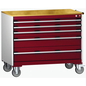 Verrijdbare ladekast Cubio SLR-1067-5.3, Totale hoogte: 890 mm, Aantal laden: 5, Totale breedte: 1050 mm, Totale diepte: 650 mm, Kleur: Rood, Type: Ladekast, Totale hoogte lade: 2 x 75 ; 1 x 100 ; 1 x 150 ; 1 x 200 mm, Kleur ombouw: Lichtgrijs, Max. belasting per lade: 50 kg, Max. belasting: 600 kg, RAL: 3004, Zwenkwiel Ø: 125 mm, Special Covid-19: nee, Aantal legborden: 0, Aantal zwenkwielen: 4, Recyclebare verpakking: Ja - 100%, Gerecyclede verpakkingen: 93 %, Gewicht: 117.6 kg, Type nr.: 40402163.24V, Lade kleur: Rood