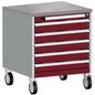 Verrijdbare ladekast Cubio SLR-666-5.3, Totale hoogte: 790 mm, Aantal laden: 5, Totale breedte: 650 mm, Totale diepte: 650 mm, Kleur: Rood, Type: Ladekast, Totale hoogte lade: 5 x 125 mm, Kleur ombouw: Lichtgrijs, Max. belasting per lade: 50 kg, Max. belasting: 300 kg, RAL: 3004, Zwenkwiel Ø: 125 mm, Special Covid-19: nee, Aantal legborden: 0, Aantal zwenkwielen: 4, Recyclebare verpakking: Ja - 100%, Gerecyclede verpakkingen: 93 %, Gewicht: 79.54 kg, Type nr.: 40402146.24V, Lade kleur: Rood