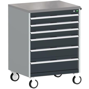 Verrijdbare ladekast Cubio SLR-869-6.1, Totale hoogte: 1090 mm, Aantal laden: 6, Totale breedte: 800 mm, Totale diepte: 650 mm, Kleur: Antraciet, Type: Ladekast, Totale hoogte lade: 3 x 100 ; 2 x 150 ; 1 x 200 mm, Kleur ombouw: Lichtgrijs, Max. belasting per lade: 50 kg, Max. belasting: 600 kg, RAL: 7016, Zwenkwiel Ø: 125 mm, Special Covid-19: nee, Aantal legborden: 0, Aantal zwenkwielen: 4, Recyclebare verpakking: Ja - 100%, Gerecyclede verpakkingen: 93 %, Gewicht: 117.39 kg, Type nr.: 40402160.19V, Lade kleur: Antraciet