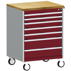 Verrijdbare ladekast Cubio SLR-869-7.1, Totale hoogte: 1090 mm, Aantal laden: 7, Totale breedte: 800 mm, Totale diepte: 650 mm, Kleur: Rood, Type: Ladekast, Totale hoogte lade: 2 x 75 ; 3 x 100 ; 1 x 150 ; 1 x 200 mm, Kleur ombouw: Lichtgrijs, Max. belasting per lade: 50 kg, Max. belasting: 600 kg, RAL: 3004, Zwenkwiel Ø: 125 mm, Special Covid-19: nee, Aantal legborden: 0, Aantal zwenkwielen: 4, Recyclebare verpakking: Ja - 100%, Gerecyclede verpakkingen: 93 %, Gewicht: 119.4 kg, Type nr.: 40402161.24V, Lade kleur: Rood