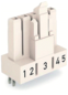Wago conn. v insteekbare gebouwinstall., (hxbxl) 28.4x23.6x12.2mm, 5 polen, behuizing polyamide (PA), beschermingsgraad (IP) IP20, contactmateriaal overig, uitvoering contrastekker (female), codering/contactinzetstuk wit, mechanische codering, 1 aansluitingen per pool,