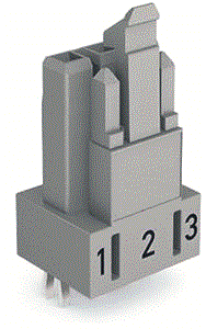 Wago conn. v insteekbare gebouwinstall., (hxbxl) 28.4x14.8x12.2mm, 3 polen, behuizing polyamide (PA), beschermingsgraad (IP) IP20, contactmateriaal overig, uitvoering contrastekker (female), codering/contactinzetstuk grijs, mechanische codering, 1 aansluitingen per pool,