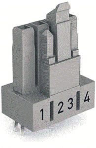 Wago conn. v insteekbare gebouwinstall., (hxbxl) 28.4x19.2x12.2mm, 4 polen, behuizing polyamide (PA), beschermingsgraad (IP) IP20, contactmateriaal overig, uitvoering contrastekker (female), codering/contactinzetstuk grijs, mechanische codering, 1 aansluitingen per pool,