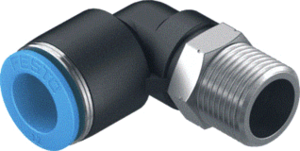 Festo insteekkoppeling t en l/draad, kunststof, draadaansluiting buitendraad conisch BSPT-, uitwendige slangdiameter 12mm, maat draadaansluiting (inch) 3/8", L-koppeling