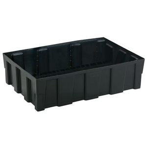 Gerecyclede bak Opslag van vaten die chemische producten, zuren en basen bevatten. Bestand tegen schokken en slechte weersomstandigheden. Inklapbaar voor een optimale opslag. Opvangcapaciteit van 224 l als het roosteraccessoire wordt gebruikt. Voorgeboord voor bevestiging van accessoires. UV-bestendige bak. Bestel een rooster om de bakken te verstevigen en andere accessoires voor andere toepassingen.