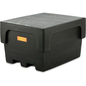 Opvangbak voor 1 IBC, Roostermat: ja, Inhoud opvangbak: 1100 L, Kleur: Zwart, Vermogen (aantal vaten): 0, Capaciteit (aantal bulkcontainers): 1, Gewicht: 63 kg, Max. statisch draagvermogen: 1500 kg, Materiaal: Polyethyleen van hoge dichtheid, Recyclebaar product: Ja - 100%, Zuurbestendig: ja, Waterige oplossing: ja