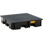 Opvangbak van polyethyleen voor pallet 220/4, Roostermat: ja, Inhoud opvangbak: 220 L, Kleur: Zwart, Model: Met stalen rooster, Vermogen (aantal vaten): 4, Materiaal: Polyethyleen, Recyclebare verpakking: Ja - 100%, Recyclebaar product: Ja - 100%, Gerecycled product: 80 %, Eco-verantwoordelijke aanpak: ja