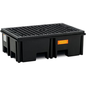 Opvangbak van polyethyleen voor pallet 220/2, Roostermat: ja, Inhoud opvangbak: 220 L, Kleur: Zwart, Rooster materiaal: Polyethyleen, Vermogen (aantal vaten): 2, Totale lengte: 1230 mm, Totale breedte: 830 mm, Totale hoogte: 360 mm, Nuttige lengte: 1200 mm, Nestbaar: ja, Materiaal: Polyethyleen, Nuttige breedte: 800 mm, Recyclebare verpakking: Ja - 100%, Recyclebaar product: Ja - 100%, Gerecycled product: 80 %, Eco-verantwoordelijke aanpak: ja
