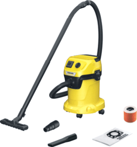 Kärcher nat- en droogzuiger (elektrisch), geel, (bxdxh) 328x349x492mm, gebruik met stofzak, stopcontact op apparaat, blaasfunctie, lengte zuigslang 2m, reservoir-inhoud 17L, filter standaard patroonfilter, nom. opgenomen vermogen 1000W, 1 zuigmotoren, energie-efficiëntieklasse F, frequentie 50/60Hz,