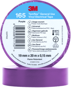 3M TEMFLEX™ 165 zelfklevende tape, polyvinylchloride (PVC), violet, (lxb) 20.12mx19mm, dikte 0.15mm, isolerend, temperatuurbestendigheid 0 - 90°C, kleeffilm rubber