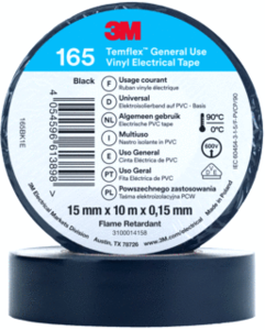 3M TEMFLEX™ 165 zelfklevende tape, polyvinylchloride (PVC), zwart, (lxb) 10mx15mm, dikte 0.15mm, isolerend, temperatuurbestendigheid 0 - 90°C, toepassing afschermen en isoleren, kleeffilm rubber, norm IEC 60454-3-1