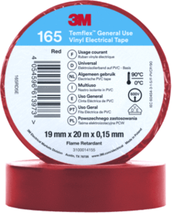 MMM VINYLTAPE 165 RO 19MMX20M - MMM zelfkl tape TEMFLEX™ 165, polyvinylchloride (PVC), rd