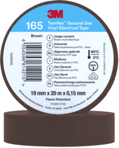 MMM VINYLTAPE 165 BR 19MMX20M - MMM zelfkl tape TEMFLEX™ 165, polyvinylchloride (PVC), bruin