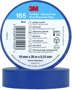 MMM VINYLTAPE 165 BL 19MMX20M - MMM zelfkl tape TEMFLEX™ 165, polyvinylchloride (PVC), bl