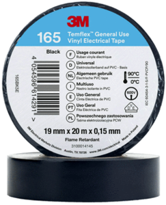 MMM VINYLTAPE 165 ZW 19MMX20M - MMM zelfkl tape TEMFLEX™ 165, polyvinylchloride (PVC), zw
