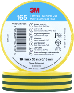 MMM VINYLTAPE 165 GR/GE 19MMX2 - MMM zelfkl tape TEMFLEX™ 165, polyvinylchloride (PVC), geel