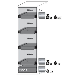 Veiligheidskast S-PHOENIX Vol.2-90 S90.196.060.075_Asecos, Totale hoogte: 1968 mm, Totale breedte: 596 mm, Totale hoogte (Reeks): Hoog (1500 - 2300 mm), Totale breedte (Reeks): 500 - 800 mm, Aantal legborden: 0, Voor producten: Ontvlambare stoffen, Brandveilig: 90 min, Inhoud opvangbak: 22 L, Aantal vakken: 1, Model: 2x lade, 1x lade, 1x lade (afvoer), 1x opvangbak op de vloer (roestvrij staal), Aantal deuren: 1, Kleur ombouw: Lichtgrijs, Kleur deur: Lichtgrijs, Totale diepte: 749 mm, Nuttige breedte: 450 mm, Nuttige diepte: 657 mm, Nuttige hoogte: 1742 mm, Materiaal: Staal, Gewicht: 381.608 kg, RAL: 7035, Special Covid-19: nee
