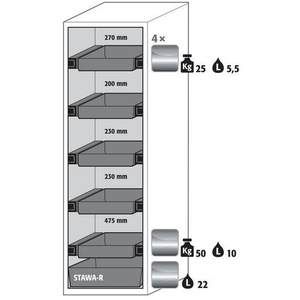 Brandveiligheidsopslagkast S-PHOENIX-90-S90.196.060, Totale hoogte: 1968 mm, Totale breedte: 596 mm, Totale hoogte (Reeks): Hoog (1500 - 2300 mm), Totale breedte (Reeks): 500 - 800 mm, Aantal legborden: 0, Voor producten: Ontvlambare stoffen, Brandveilig: 90 min, Inhoud opvangbak: 22 L, Aantal vakken: 1, Model: 3x lade, 1x lade, 1x lade (afvoer), 1x opvangbak op de vloer (roestvrij staal), Aantal deuren: 1, Kleur ombouw: Geel, Kleur deur: Geel, Totale diepte: 749 mm, Nuttige breedte: 450 mm, Nuttige diepte: 657 mm, Nuttige hoogte: 1742 mm, Materiaal: Staal, Gewicht: 378.608 kg, RAL: 1004, Special Covid-19: nee