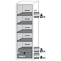 Veilige opslag, voldoet aan de geldende regelgeving voor gevaarlijke, ontvlambare producten in werkruimtes Robuust en duurzaam: stevige constructie aan de buitenkant van staal met epoxy-coating, 3 bevestigingsscharnieren per deur, volledig sluitmechanisme en beveiligingselementen ter bescherming tegen corrosie, gemonteerd buiten de opslagruimte Inklapbare deur die weinig ruimte in beslag neemt: minder ruimte vereist vóór de kast wanneer de deur geopend is Comfortabel: automatisch deursluitmechanisme, deuren kunnen in geopende stand worden gehouden. Veilige opslag van containers Altijd gesloten: het automatisch deursluitsysteem (TSA) sluit de geblokkeerde deur na 60 seconden vrij, geluidsalarm en visueel alarm voordat de deur sluit Gecontroleerd gebruik: vergrendelbare deur, compatibel met centrale vergrendeling Beluchting en ontluchting: ingebouwd beluchtings- en ventilatiesysteem voor aansluiting (diameter 75 mm) op een technisch luchtafvoersysteem Let op: voor de technische ventilatie van de kast adviseren wij de ventilatiebox met geïntegreerde filtratie (zonder gaten in de muren te boren of afvoerleidingen naar buiten).