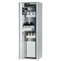 Veilige opslag van ontvlambare gevaarlijke stoffen in werkruimtes conform de wettelijke voorschriften, Functie - constructie: Robuust en duurzaam: stabiele buitenbehuizing van gepoedercoat fijn plaatstaal, 3-voudige deurophanging, volledig sluitmechaniek en veiligheidselementen ter bescherming tegen corrosie buiten de opslagruimte gemonteerd, Ruimtebesparende vouwdeur: kleine benodigde ruimte voor de kast bij geopende deur, Betrouwbaar en veilig: de deur klikt vast in de standaard gemonteerde deurvastzetinrichting voor het veilig plaatsen en uitnemen van emballage, Geen toegang voor onbevoegden: deur afsluitbaar met profielcilinder (geschikt voor centraal deursluitsysteem), Gemakkelijk te plaatsen: stelvoeten voor het compenseren van kleinere oneffenheden in de vloer (tot 10 mm), Be- en ontluchting: geïntegreerd beluchtings- en ventilatiesysteem voor aansluiting (NW 75) op een mechanische afzuiginstallatie