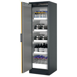 Veiligheidskast Q-CLASSIC-90 Q90.195.060 grijs/geel_Asecos, Totale hoogte: 1953 mm, Totale breedte: 599 mm, Totale hoogte (Reeks): Hoog (1500 - 2300 mm), Totale breedte (Reeks): 500 - 800 mm, Aantal legborden: 4, Voor producten: Ontvlambare stoffen, Brandveilig: 90 min, Inhoud opvangbak: 11 L, Aantal vakken: 1, Model: 4x opvanglegbord, 1x opvangbak op de vloer (PP), Aantal deuren: 1, Kleur ombouw: Antraciet, Kleur deur: Geel, Totale diepte: 615 mm, Nuttige breedte: 450 mm, Nuttige diepte: 522 mm, Nuttige hoogte: 1647 mm, Materiaal: Staal, Gewicht: 336.28 kg, RAL: 7016, Special Covid-19: nee