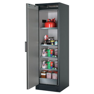 Veiligheidskast Q-CLASSIC-90 Q90.195.060 grijs/geel_Asecos, Totale hoogte: 1953 mm, Totale breedte: 599 mm, Totale hoogte (Reeks): Hoog (1500 - 2300 mm), Totale breedte (Reeks): 500 - 800 mm, Aantal legborden: 4, Voor producten: Ontvlambare stoffen, Brandveilig: 90 min, Inhoud opvangbak: 22 L, Aantal vakken: 1, Model: 4x legbord, 1x rooster, 1x opvangbak op de vloer (roestvrij staal), Aantal deuren: 1, Kleur ombouw: Antraciet, Kleur deur: Lichtgrijs, Totale diepte: 615 mm, Nuttige breedte: 450 mm, Nuttige diepte: 522 mm, Nuttige hoogte: 1647 mm, Materiaal: Staal, Gewicht: 319.28 kg, RAL: 7016, Special Covid-19: nee