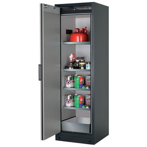 Veiligheidskast Q-CLASSIC-90 Q90.195.060 grijs/wit_Asecos, Totale hoogte: 1953 mm, Totale breedte: 599 mm, Totale hoogte (Reeks): Hoog (1500 - 2300 mm), Totale breedte (Reeks): 500 - 800 mm, Aantal legborden: 4, Voor producten: Ontvlambare stoffen, Brandveilig: 90 min, Inhoud opvangbak: 22 L, Aantal vakken: 1, Model: 4x legbord, 1x opvangbak op de vloer (roestvrij staal), Aantal deuren: 1, Kleur ombouw: Antraciet, Kleur deur: Wit, Totale diepte: 615 mm, Nuttige breedte: 450 mm, Nuttige diepte: 522 mm, Nuttige hoogte: 1647 mm, Materiaal: Staal, Gewicht: 316.28 kg, RAL: 7016, Special Covid-19: nee