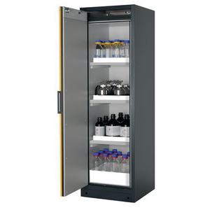 Veiligheidskast Q-PEGASUS-90 Q90.195.060 grijs/geel_Asecos, Totale hoogte: 1953 mm, Totale breedte: 599 mm, Totale hoogte (Reeks): Hoog (1500 - 2300 mm), Totale breedte (Reeks): 500 - 800 mm, Aantal legborden: 3, Voor producten: Ontvlambare stoffen, Brandveilig: 90 min, Inhoud opvangbak: 11 L, Aantal vakken: 1, Model: 3x opvanglegbord, 1x opvangbak op de vloer (PP), Aantal deuren: 1, Kleur ombouw: Antraciet, Kleur deur: Geel, Totale diepte: 615 mm, Nuttige breedte: 450 mm, Nuttige diepte: 522 mm, Nuttige hoogte: 1647 mm, Materiaal: Staal, Gewicht: 326.78 kg, RAL: 7016, Special Covid-19: nee