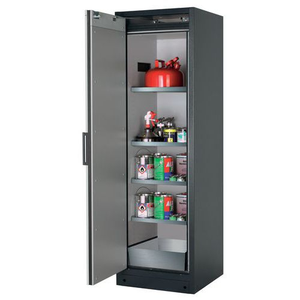 Veiligheidskast Q-PEGASUS-90 Q90.195.060 grijs/grijs_Asecos, Totale hoogte: 1953 mm, Totale breedte: 599 mm, Totale hoogte (Reeks): Hoog (1500 - 2300 mm), Totale breedte (Reeks): 500 - 800 mm, Aantal legborden: 4, Voor producten: Ontvlambare stoffen, Brandveilig: 90 min, Inhoud opvangbak: 22 L, Aantal vakken: 1, Model: 4x legbord, 1x opvangbak op de vloer (roestvrij staal), Aantal deuren: 1, Kleur ombouw: Antraciet, Kleur deur: Lichtgrijs, Totale diepte: 615 mm, Nuttige breedte: 450 mm, Nuttige diepte: 522 mm, Nuttige hoogte: 1647 mm, Materiaal: Staal, Gewicht: 315.28 kg, RAL: 7016, Special Covid-19: nee