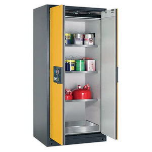 Veiligheidskast Q-PEGASUS-90 Q90.195.090 grijs/geel_Asecos, Totale hoogte: 1953 mm, Totale breedte: 893 mm, Totale hoogte (Reeks): Hoog (1500 - 2300 mm), Totale breedte (Reeks): 800 mm, Aantal legborden: 3, Voor producten: Ontvlambare stoffen, Brandveilig: 90 min, Inhoud opvangbak: 22 L, Aantal vakken: 1, Model: 3x legbord, 1x opvangbak op de vloer (roestvrij staal), Aantal deuren: 2, Kleur ombouw: Antraciet, Kleur deur: Geel, Totale diepte: 615 mm, Nuttige breedte: 750 mm, Nuttige diepte: 522 mm, Nuttige hoogte: 1647 mm, Max. belasting: 600 kg, Materiaal: Staal, Gewicht: 396.967 kg, RAL: 7016, Special Covid-19: nee, CLP - Ontvlambare stoffen: ja
