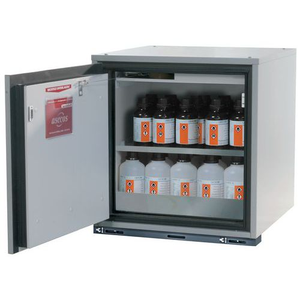 Veilige opslag, voldoet aan de geldende regelgeving voor gevaarlijke, ontvlambare producten in werkruimtes Functie / constructie: Robuust en duurzaam: stalen constructie aan de buitenkant met epoxy-coating Werkcomfort: de deuren zijn in alle posities geblokkeerd, veilige toegang tot alle containers – openingshoek van de deuren 93°, binnenkant van de kast is volledig zichtbaar Gecontroleerd gebruik: vergrendelbare deuren slot, indicator voor deurvergrendeling (rood/groen) Mobiel: optionele sokkel met wielen, voor eenvoudig verplaatsen van de kast Beluchting en ontluchting: ingebouwd beluchtings- en ventilatiesysteem voor aansluiting (diameter 50 mm) op een technisch luchtafvoersysteem